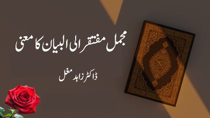 “(علمائے اصولیین کے مطابق) قرآن مجید کے اندر بہت ساری ایسی اصطلاحات الفاظ استعمال ہوئے ہیں جو مجمل مفتقر الی البیان ہیں۔ اس مجمل مفتقر الی البیان کا مطلب یہ ہے کہ قرآن نے ایک لفظ استعمال کیا لیکن اس کا جو مخاطب ہے وہ اس لفظ سے واقف نہیں ہے، وہ اس لفظ کی حقیقت کو اس کے مصداق کو اس کے تصور کو جو اس لفظ کو سن کے پیدا ہوتا ہے اس کے مفہوم کو جاننے سے قاصر ہے، مفتقر الی البیان کا مطلب ہے کہ وہ محتاج ہے کہ اس لفظ کو واضح کیا جائے اس لفظ کی تفسیر کی جائے ۔۔۔ وہ بات جس وقت پیغمبر کی زبان سے اپنے مخاطبین کے لئے نکلی تو وہ لوگ اس کی حقیقت سے مکمل طور پر غیر آشنا تھے وہ واقف ہی نہیں تھے۔”